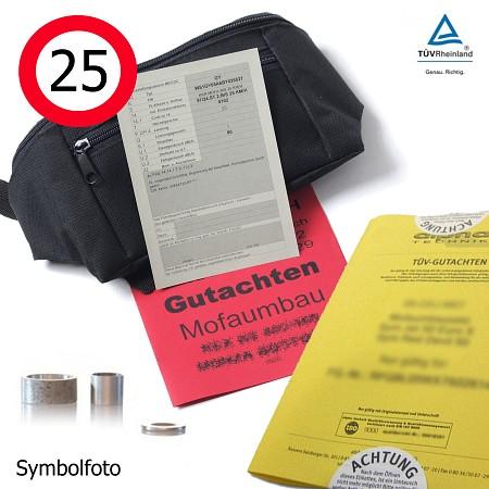 * Mechanische oder elektronische Drossel? Für einige Fahrzeugmodelle gibt es beide Varianten zur Auswahl. Eine elektronische Drossel besteht aus elektronischen und z.T. zusätzlichen mechanischen Komponenten und liefert bis 25 km/h die Leistung eines offenen Rollers/Mopeds, dafür ist der Preis etwas höher. Eine mechanische Drossel ist dagegen eine preisgünstigere Variante, die die Leistung ausschließlich mechanisch reguliert und die bei einem TÜV-Eintrag genauso anerkannt wird wie eine elektronische Drosselart.