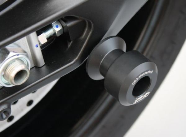 Der Achspad Kit bietet dank einfacher Montage und hochwertiger Materialien einen hervorragenden Schutz für Hinterrad und Schwinge deines Motorrades bei Stürzen und ist eine optimale Ergänzung zum Sturzpad Satz (sichert Rahmen und Motor).